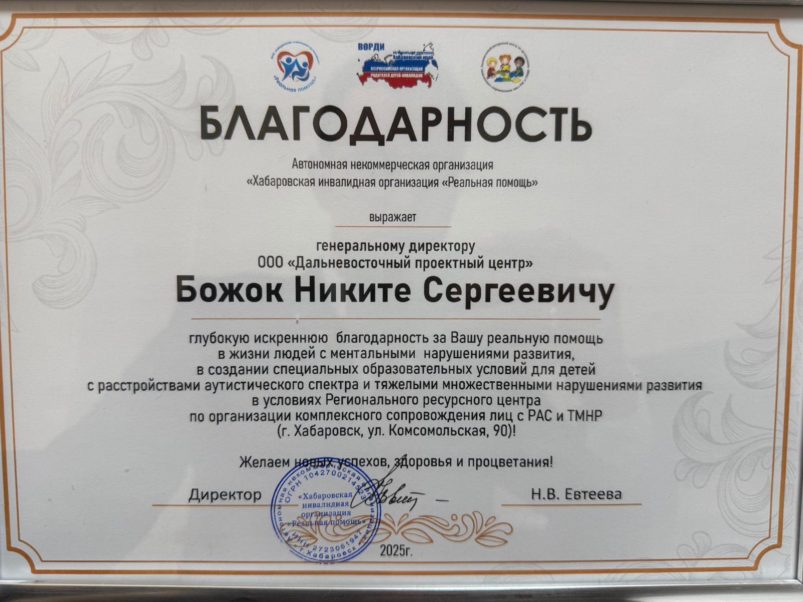 - The project included the redevelopment of the entrance group with an increase in the entrance space, the installation of a warm vestibule, the expansion of doorways for accessibility of low-mobility groups of the population, the creation of a lobby with a waiting area and a dressing room. In addition, he took into account the external work, such as the renovation of the facade and the installation of a canopy over the entrance group," said Nikita Bozhok, General Director of the Far Eastern Design Center. The Khabarovsk Disabled Organization Real Help provides assistance in the creation and development of specialized preschool, school and professional institutions for people with severe and multiple developmental disabilities, in training specialists to work with people with disabilities, in developing programs and conditions for the education and upbringing of people with disabilities.- Thanks to the professionalism and creative approach of the Far Eastern Design Center LLC team, a project has been developed that takes into account all the nuances, as well as emphasizes our mission and status. We sincerely admire the desire to help others and are grateful for their selflessness. The support you have provided to our branch has become an important success factor and inspiration for further work," said Natalia Evteeva, Director of the Khabarovsk Disabled Organization Real Help.